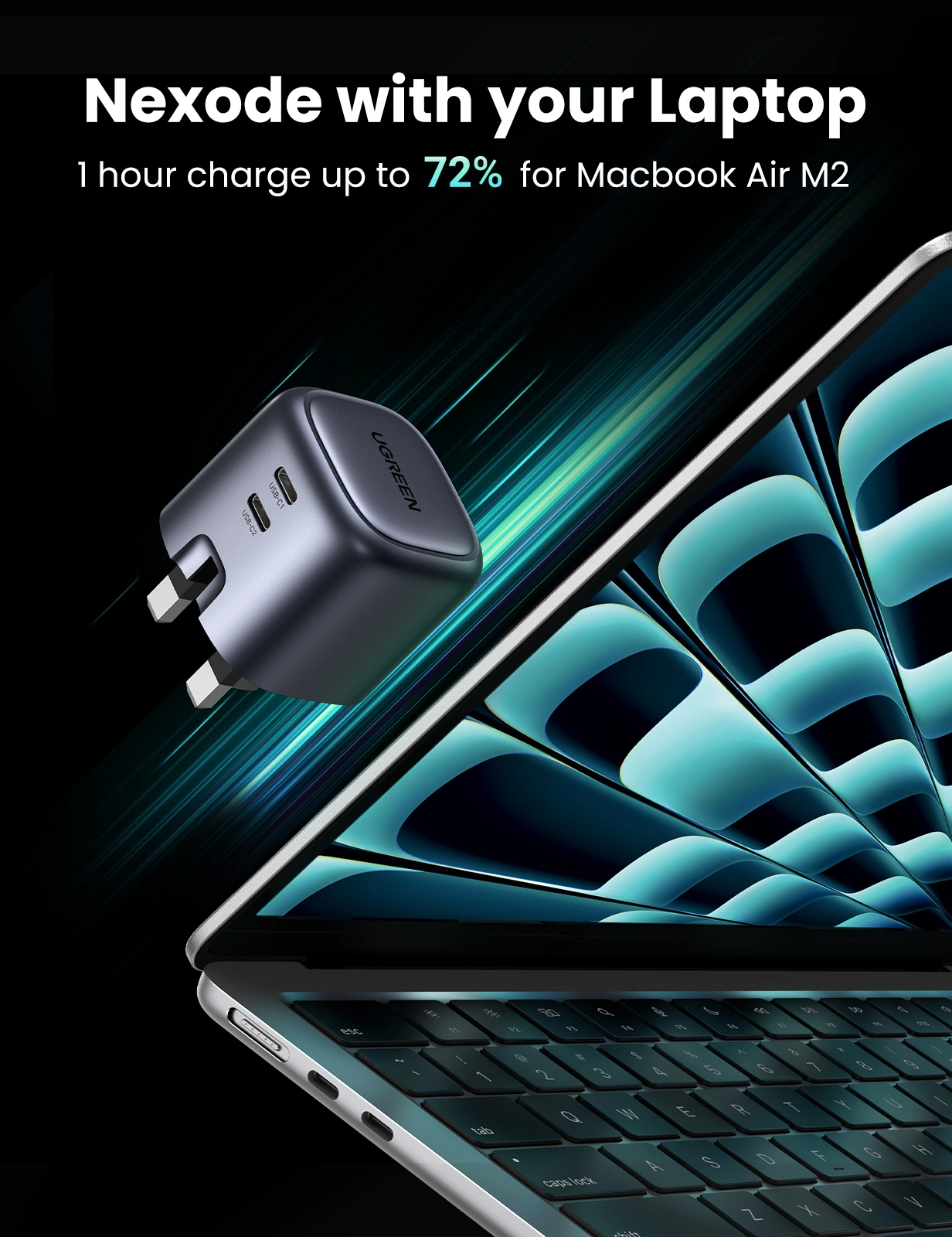 The UGREEN Nexode 45W Dual Type-C PD GaN Fast Charger (Model: CD294) is a cutting-edge charging solution with dual USB-C ports capable of delivering 45W combined output. Powered by GaN II technology, it offers faster, safer, and more compact charging. Its lightweight, foldable design and advanced safety features make it ideal for travel and everyday use.